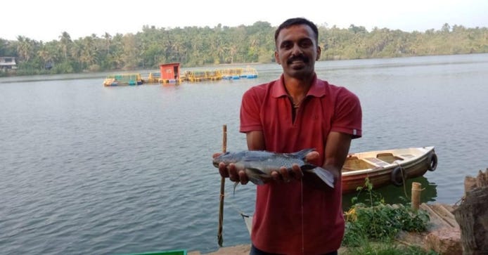 Ex-Army man Dinil Prasad left a secure government job to start caged fish farming in Kerala, inspired by women entrepreneurs he saw online. Despite initial family resistance and setbacks from the 2018 floods, he rebuilt his business, now operating seven cages and helping about 50 other farmers adopt sustainable aquaculture practice.