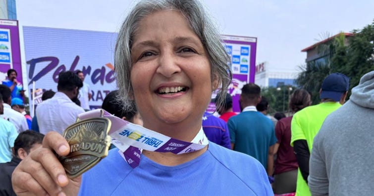 Ashuâs story is remarkable because she dared to dream beyond the boundaries set by society. After decades devoted to her family, she reignited her academic ambitions at 44, earning an MTech and later a PhD from IIT Delhi at 53, all with her childrenâs encouragement. But her real turning point arrived at 54, when a health scare forced her to confront the realities of ageing. Rejecting a sedentary future, she embraced fitness, starting with online classes and eventually joining a gym. Her dedication led to podium finishes in running events and a vibrant social media presence, where she inspires thousands as @not.just.a.grandma.
