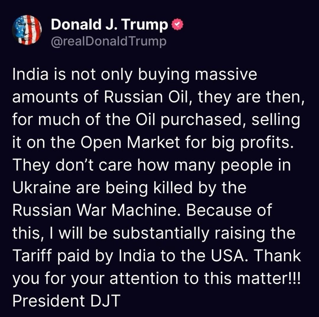 Trump’s Tariff Threats Intensify: US President Donald Trump threatened “substantial” tariffs on India over Russian oil purchases, prompting India to defend its trade policy as consistent and balanced. Russia called the threats “illegal.”