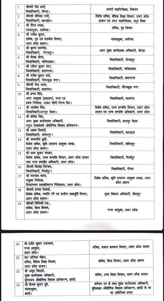 Uttar Pradesh Government Transfers 23 IAS Officers