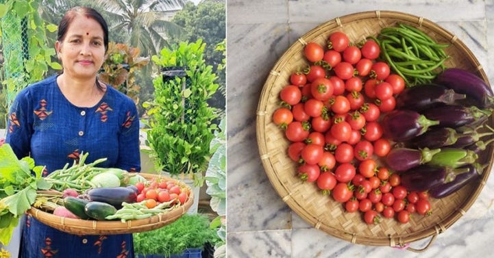 Jayanti Sahoo from Bhubaneswar transformed her 350 sq ft rooftop into a lush organic garden, growing fruits and vegetables in upcycled fish crates. Using grafted saplings, homemade compost, and natural pest control, she achieves year-round harvests. Her sustainable methods offer urban families fresh, chemical-free produce and mental peace.
